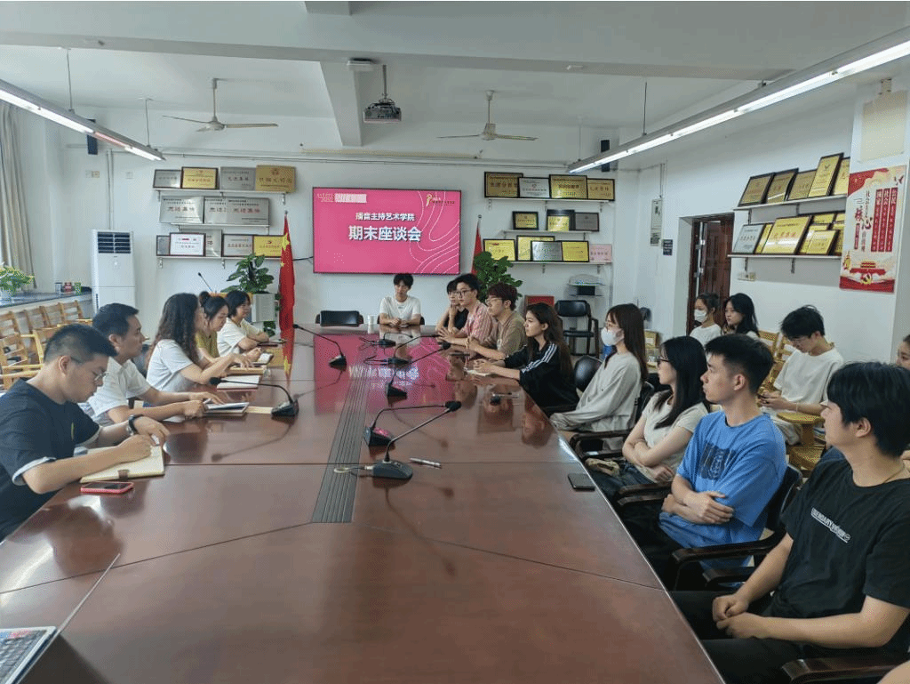 为扎实推进学习贯彻习近平新时代中国特色社会主义思想主题教育走深走实,坚持以学促干、以学促改、以学促进,进一步了解学生诉求、为学生解难事、办实事,6月25日播音主持艺术学院在323会议室召开本学期期末座谈会。学院党委书记戚鸿峰、副书记杭瑛,学院教学办、实验办、学工办教师,以及各年级学生代表参加会议。