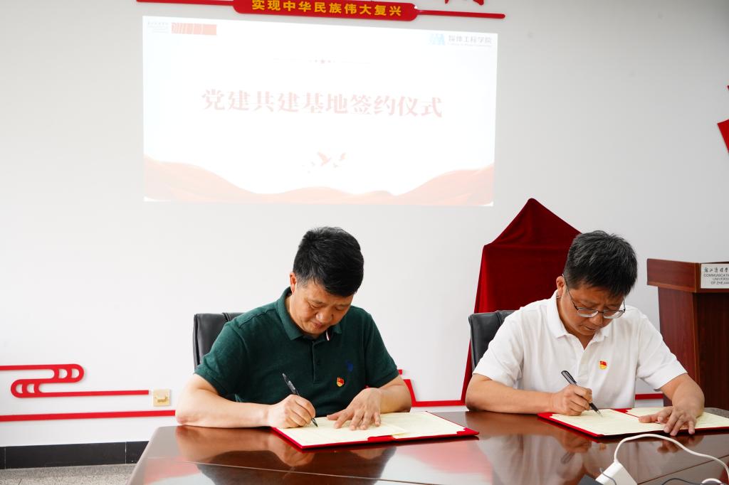 学院党委书记姜武和省文联传媒中心总支书记陈文颀分别代表媒体工程学院和浙江省文联传媒中心签署了党建共建协议。