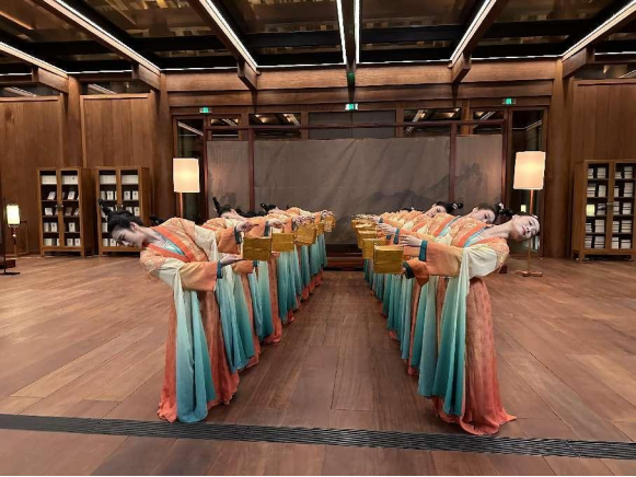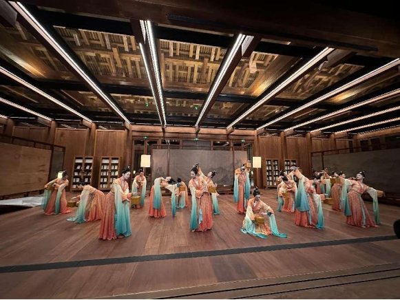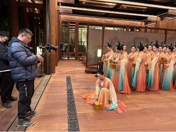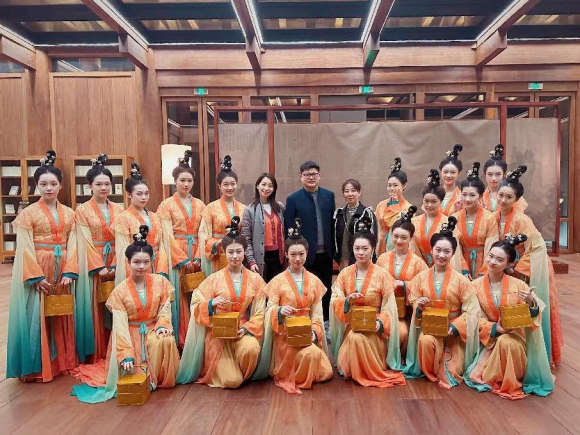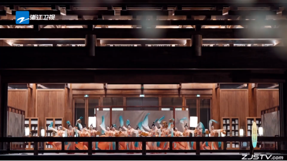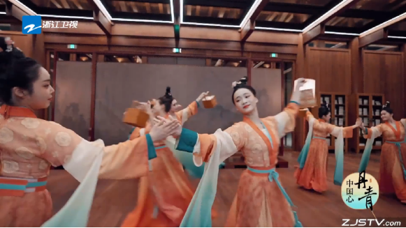 4月23日,音乐学院18名舞蹈编导专业学生参与浙江广电集团Z视介“中国心”系列之《丹青中国心》录制,倾情演绎了开场舞蹈《华灯夜宴》,将南宋经典画作《华灯侍宴图》通过舞蹈的形式生动展现在电视荧幕前。为满足艺术效果,同学们用了近一年的时间反复打磨作品,将艺术与理论、古风与新韵有机结合,运用现代审美的加工,深化宋韵文化的创造性转化、舞蹈意象的诗性表达,赋予了美术作品新的生命力,舞蹈嵌入中国建筑“沉浸式”的呈现样式,以古今对话的形式使观众身临其境地走进宋代,演绎出宋画独特的轻柔淡雅之风,无限高雅之美,展现了传统文化的新生力量。