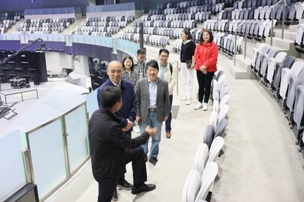 杭州电竞中心是今年杭州亚运会电竞项目比赛场地。中心场馆秘书长、运行主任邢小四带领运行团队各领域负责人详细介绍了场馆建设、运行和已经举办的各项电竞赛事。随后,徐伟标一行实地考察了场馆中心舞台、各功能房等技术区域。
