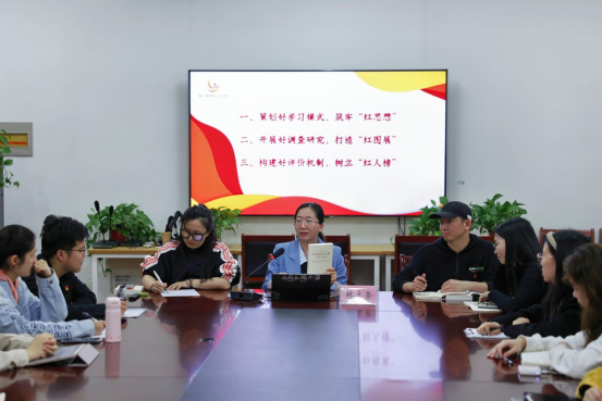 林书记开篇就抛出了问题,引起大家思考:咱们所在的设计艺术学院,学生第一党支部是第一批全国党建工作样板支部,学院党委是第二批全省党建标杆院系培育建设单位。自学校党委部署主题教育以来,我们就一直在思考,主题教育怎么学怎么做才能达到更深层次的思想内化、行为外化和实践转化成效,如何在目前基础上发挥学院党建优势、专业特色,在主题教育中再建新功?