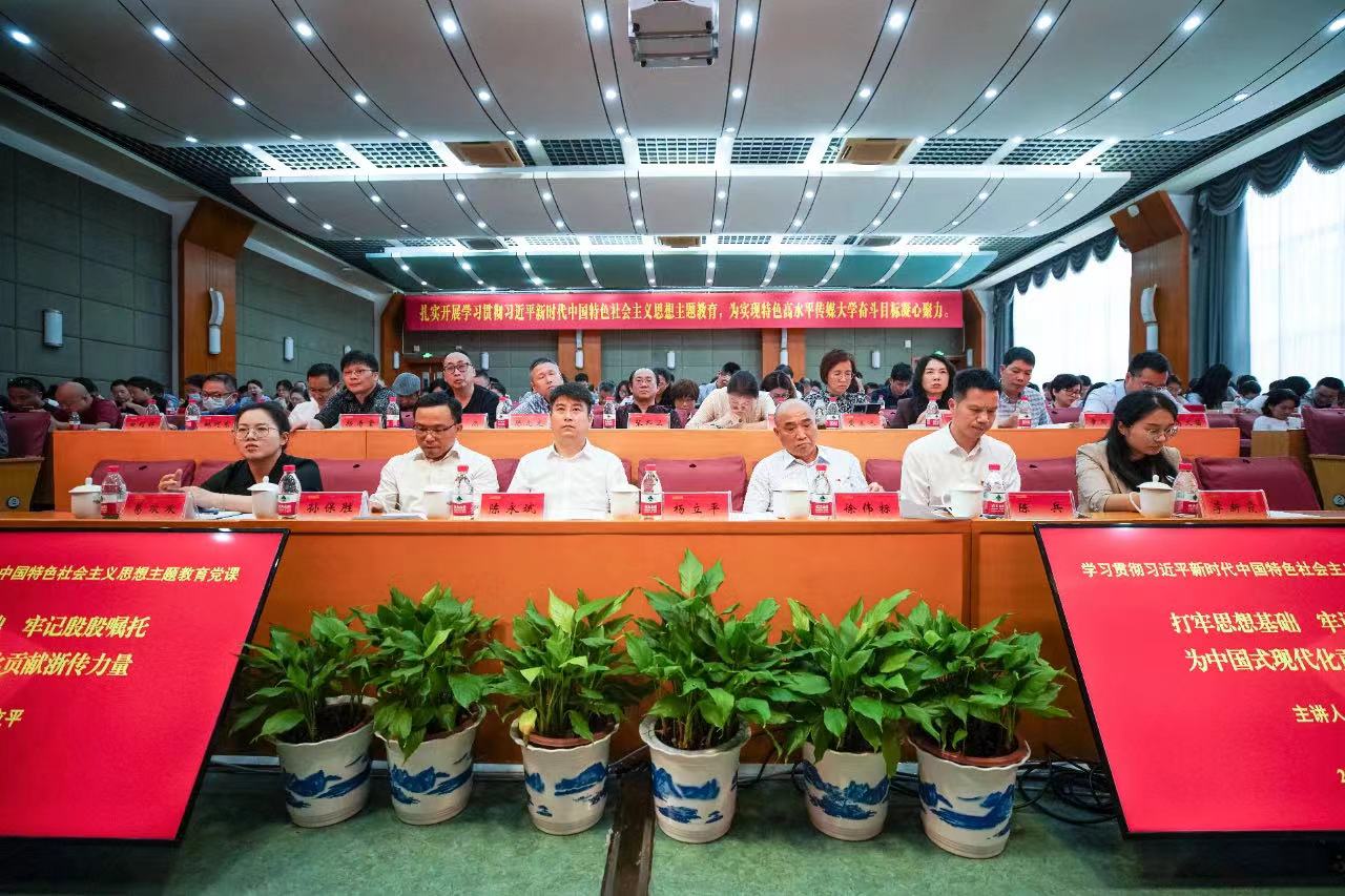 5月5日下午,我校学习贯彻习近平新时代中国特色社会主义思想主题教育读书班开班式在杭州钱塘校区举行。我校党委书记、主题教育领导小组组长杨立平讲授专题党课,省主题教育第十五巡回指导组成员到会指导,我校主题教育领导小组组长、副组长和成员,全体中层干部、机关党委全体党员参加,开班式由校党委副书记、主题教育领导小组副组长徐伟标主持。