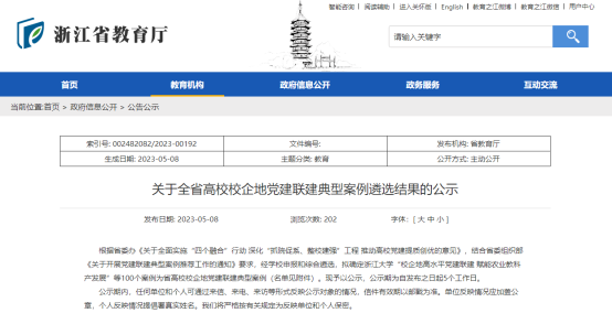根据省委办《关于全面实施“四个融合”行动深化“抓院促系、整校建强”工程推动高校党建提质创优的意见》,结合省委组织部《关于开展党建联建典型案例推荐工作的通知》要求,经学校申报和综合遴选,拟确定浙江大学“校企地高水平党建联建 赋能农业教科产发展”等100个案例为省高校校企地党建联建典型案例,我校设计艺术学院“艺术赋能乡村振兴”党建联建案例成果入选。