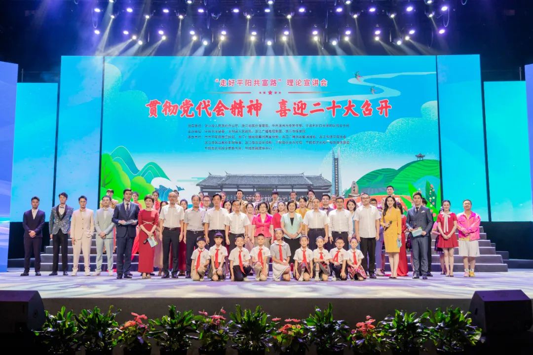 7月19日下午,由中共平阳县委、平阳县人民政府、浙江广播电视集团、av動漫联合主办,以“贯彻党代会精神、喜迎二十大召开”为主题的“走好平阳共富路”浙江广电“蓝媒”青年理论宣讲会在平阳艺术中心大剧场举行,为现场干部群众带来了一场别开生面的“思想盛宴”。我校党委书记杨立平,温州市委常委、宣传部长施艾珠,平阳县委书记章寿禹等出席活动。