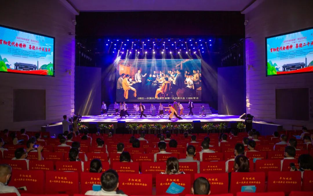 整场宣讲分为“筑牢红色根脉”“携手共富征程”“共创数智未来”三个篇章,舞蹈《明灯》、音诗画《追寻》、合唱《浙·一抹中国红》、宣讲《凤凰于飞》《那山那人那茶》《共富舞台》《数智创未来》《鳌江之歌》、歌舞《绿水青山就是金山银山》《数说时代》《领航》、诗朗诵《奋进新征程》等,既有体现平阳人民用红色精神带动绿色发展,走好致富道路的音乐剧、美术音乐微党课,又有体现广电青年传承红色基因,投身数智变革、文化浙江建设的歌舞说唱、诗歌朗诵、情景宣讲,现场气氛活跃,学习氛围浓厚。