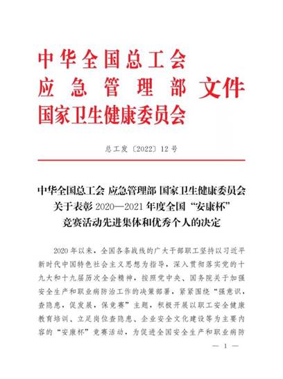 日前,中华全国总工会、应急管理部、国家卫生健康委员会联合发文,表彰2020-2021年度全国“安康杯”竞赛活动先进集体和优秀个人,我校后勤服务中心荣获全国“安康杯”竞赛优胜单位,成为浙江省唯一获此殊荣的高校。