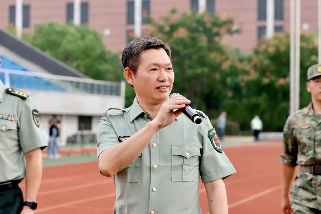 我校校长徐小洲,副校长杨荣耀、姚争、张梁,纪委书记徐伟标,副校长李文冰,党委副书记陈永斌,党委委员、组织部部长陈兵,党委委员、宣传部部长、统战部部长孙保胜,杭州市钱塘区人武部上校部长王雷,杭州市钱塘区人武部军事科科长、av動漫2022级学生军训团副参谋长孙千秋和学生军训工作领导小组成员出席,大会由陈永斌主持。