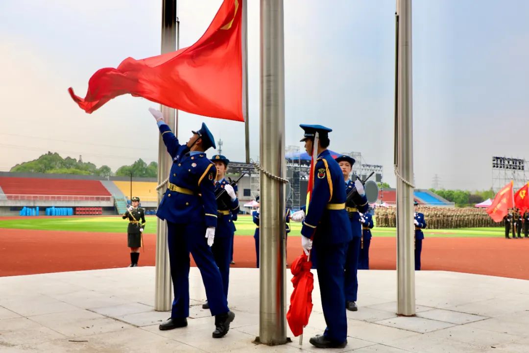 伴随着嘹亮的义勇军进行曲,庄严肃穆的升旗仪式正式开始,军训汇演拉开序幕。