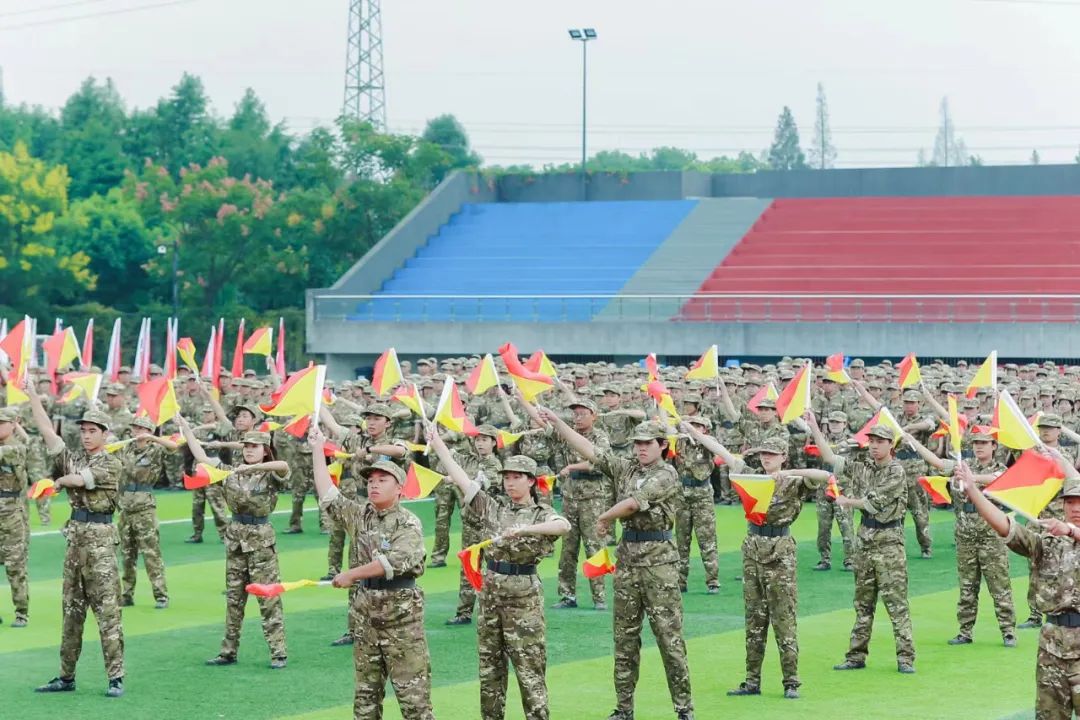9月23日,2022级学生军训汇报表演暨总结表彰大会在桐乡乌镇校区体育场举行。