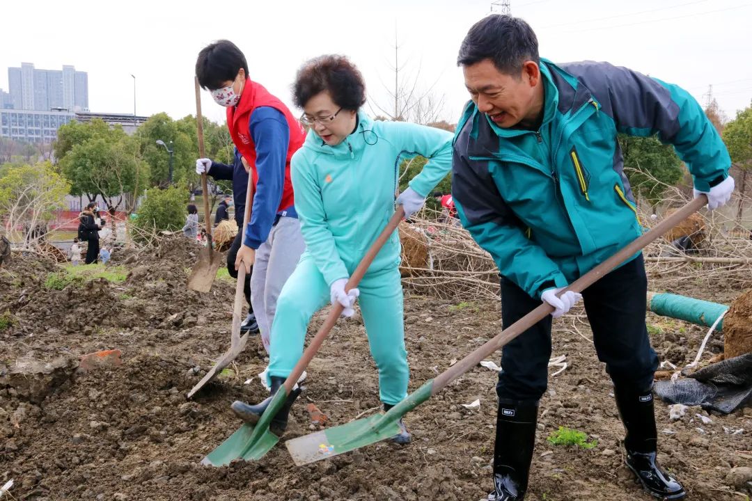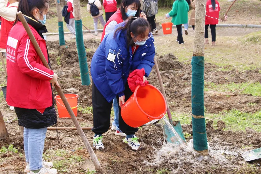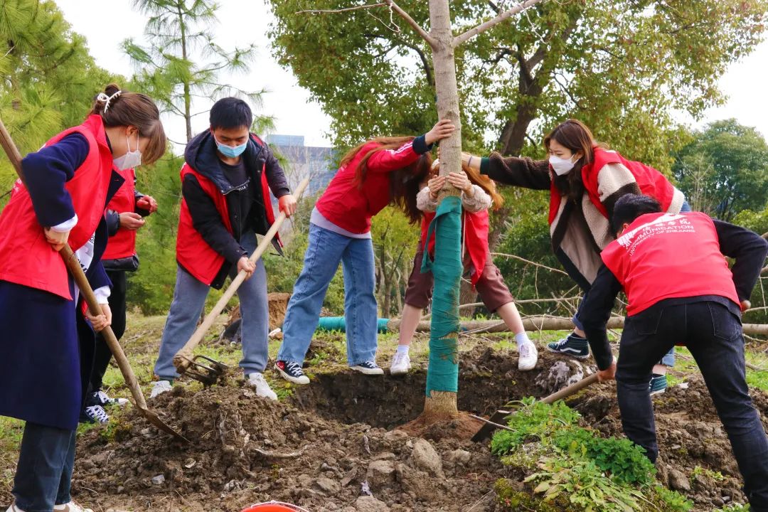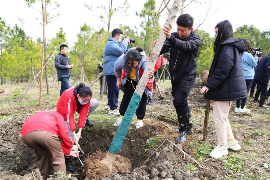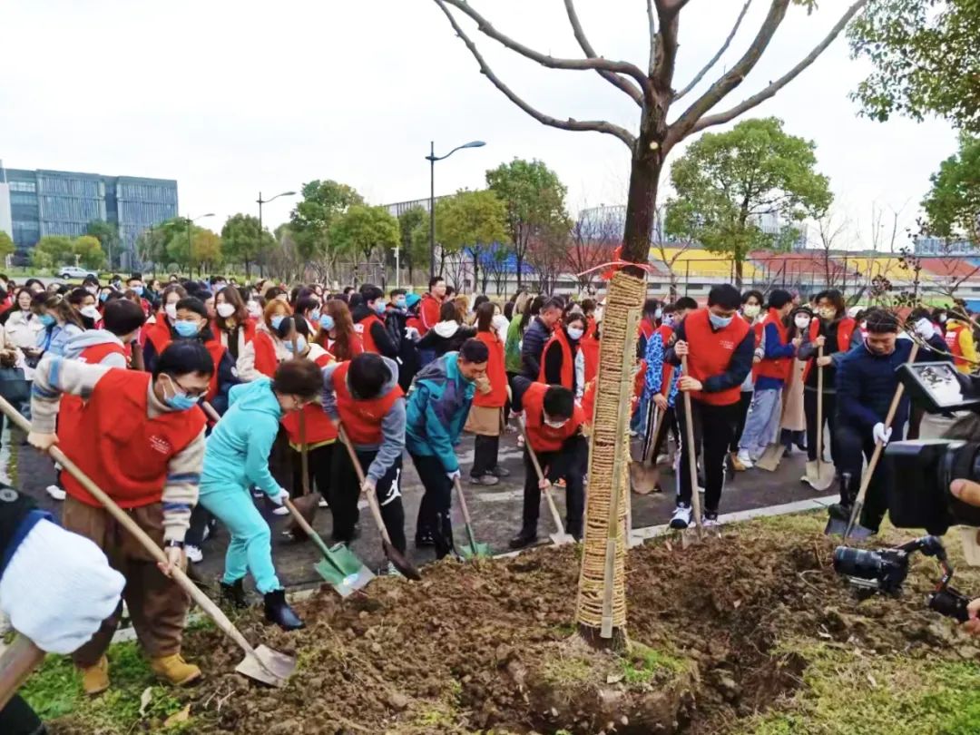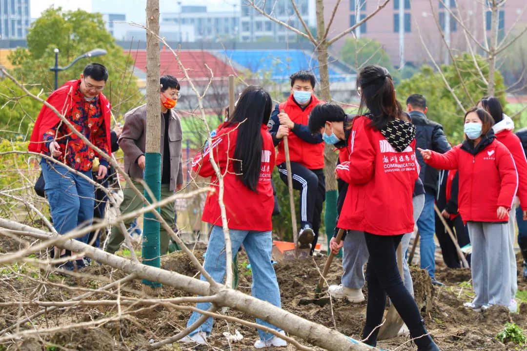 校党委书记杨立平,校长徐小洲,党委副书记宣裕方,副校长杨荣耀、姚争、张梁,纪委书记徐伟标,副校长李文冰,党委副书记陈永斌出席活动。各职能部门负责人,二级学院教师代表以及150余名学生代表,在桐乡乌镇校区植树120余棵,为校园增添了一抹新绿。