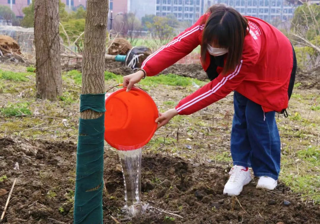 活动伊始,校党委书记杨立平以唐朝诗人韩愈的七言绝句《早春呈水部张十八员外》为引,“天街小雨润如酥,草色遥看近却无。最是一年春好处,绝胜烟柳满皇都。”带领学生们欣赏早春的独特之美。她指出,十年树木,百年树人,树木作为学校环境文化的一部分,不仅为学校打造优美的环境景观,还可以增加文化底蕴,发挥环境育人作用,让师生受到文化熏陶,美化心灵。她倡导同学们以劳动感悟春天,用劳动扮美校园。