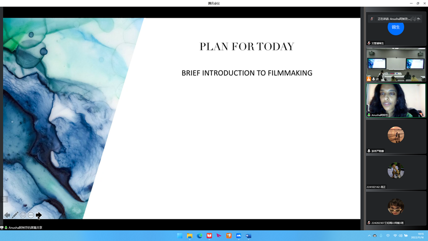 Anusha Venkatachalam Iyer女士结合自己在中国乡村生活摄影经历,以中国乡村纪录短片为例,讲授视频的构思、摄制及后期制作等大量实例,分享了自己跨国影片制作和跨文化交流的相关经验。讲座最后,Anusha Venkatachalam Iyer女士通过问答形式与会场师生进行了深入交流,同学们积极参与讨论,现场氛围融洽而热烈。