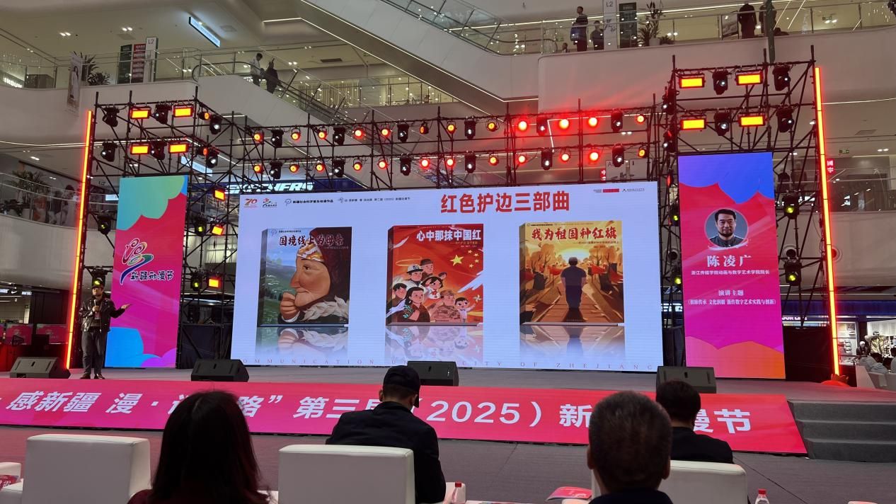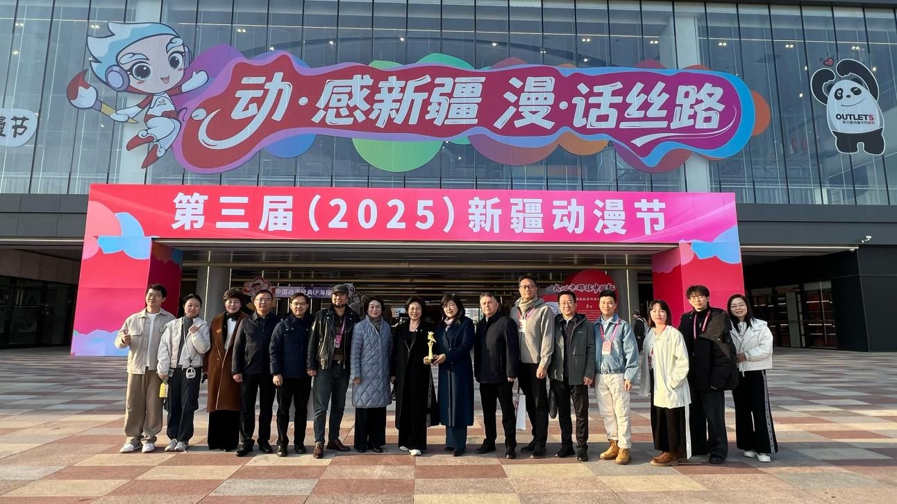 2025年10月19日,第三届(2025)新疆动漫节在乌鲁木齐经开区砂之船超级奥莱正式启幕。本届动漫节以“动・感新疆 漫・话丝路”为主题,由自治区社科联、自治区党委网信办、自治区科协联合主办,为期一周的活动将为全国动漫爱好者呈现一场兼具文化深度与创意活力的交融盛宴。本届动漫节吸引了全国13个省区、疆内14个地(州、市)的50余所院校、近50家动漫企业及广大动漫爱好者踊跃参与。活动围绕铸牢中华民族共同体意识主线,借力动漫这一年轻群体喜闻乐见的载体,讲好新疆故事,引领“Z世代”青年共同描绘中国式现代化的新疆画卷,为新疆维吾尔自治区成立70周年献上文化厚礼。av動漫受邀携多部新疆题材动漫作品参展,其中插画作品《心中那抹中国红》斩获动漫作品大赛二等奖,湛胜平、颜勇两位教师执导的师生团队力作《百年老街王三街》《逆境中绽放的坚韧之花》同步亮相,以数字艺术讲好新疆故事,为"文化润疆"工程注入创新活力。