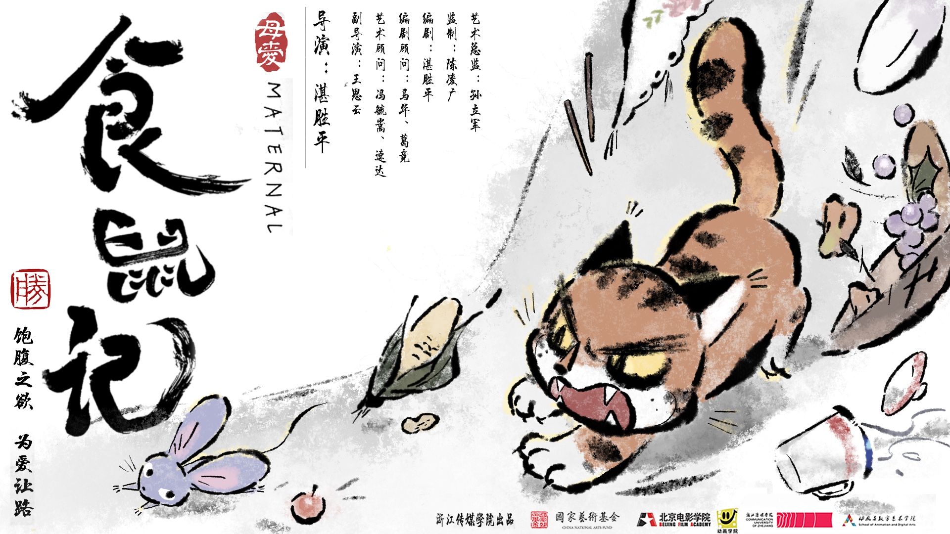 《食鼠记》将中国传统水墨画与现代技术相融合,通过新颖的视觉语言来描绘社区生活。故事灵感源自中国东北的民间传说,以幽默、充满动作的场景重新演绎了经典的猫鼠博弈。故事以母性及女性特质为主题,探讨了哺乳期的猫与怀孕的老鼠之间的情感张力。这个故事对爱、本能与无私进行了诗意沉思,同时也对自然与人性之间的平衡进行了探讨。