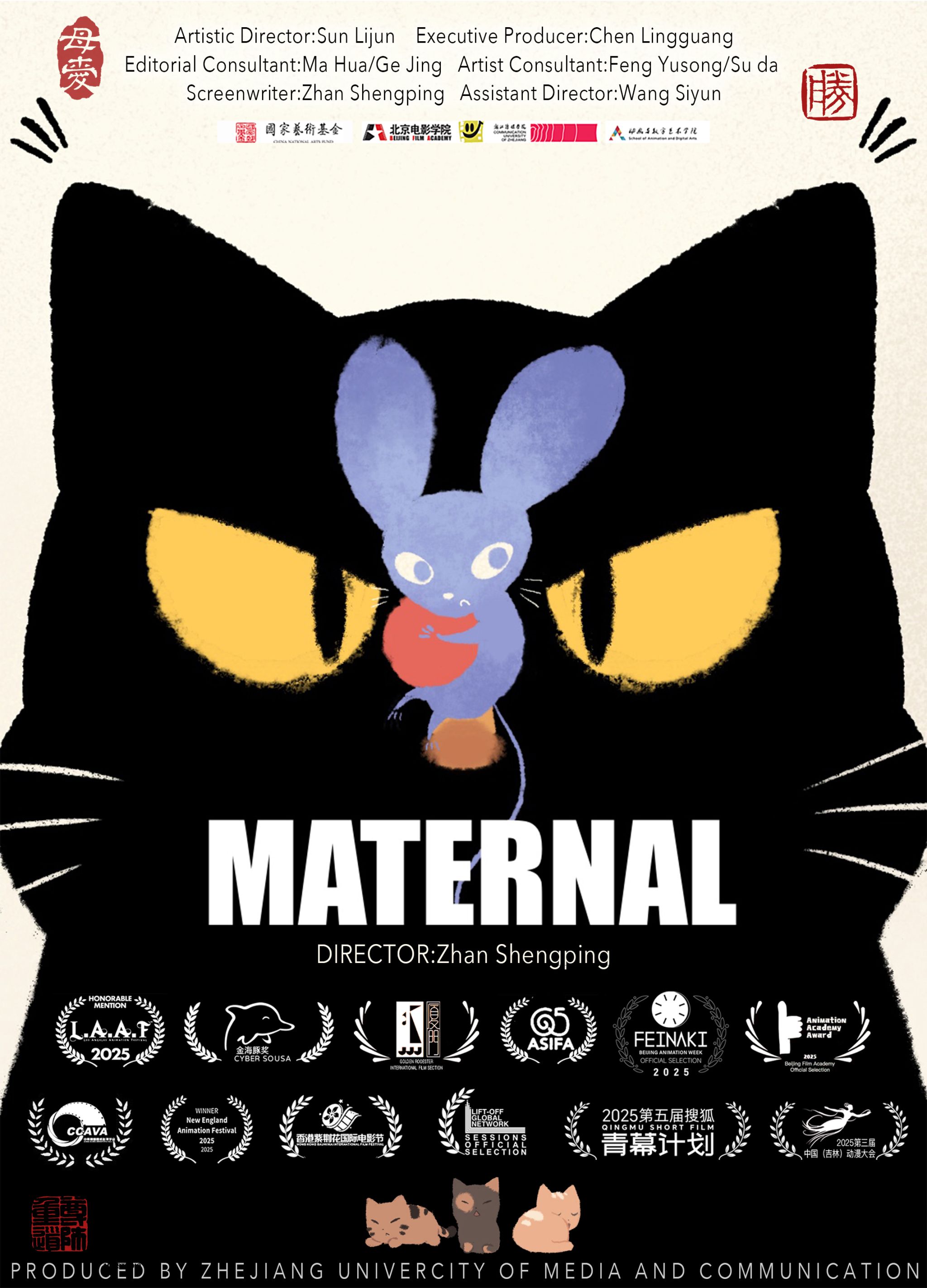 日前,第四届“香港紫荆花国际电影节”在香港成功举办。av動漫动画与数字艺术学院陈凌广院长监制、湛胜平老师执导的动画短片《食鼠记》,从全球众多参评作品中脱颖而出,斩获短片单元最佳导演奖。这是继该片入围第六届金鸡海峡两岸暨港澳青年短片季、获第三届中国(吉林)动漫大会“最佳电视动画片奖”后,再度斩获国际电影节重量级奖项,标志着中国水墨动画的当代创新实践获得国际电影界高度肯定。