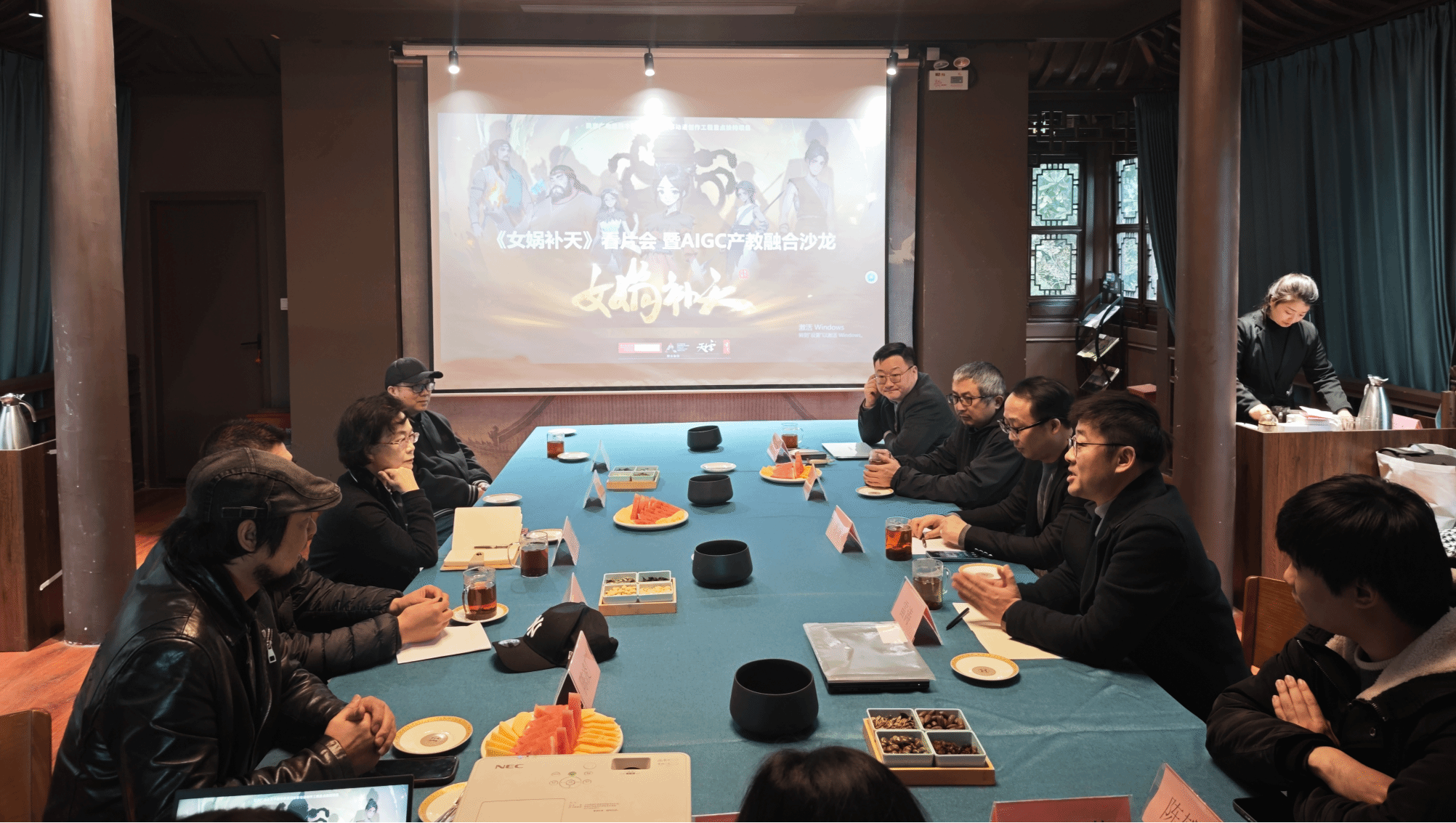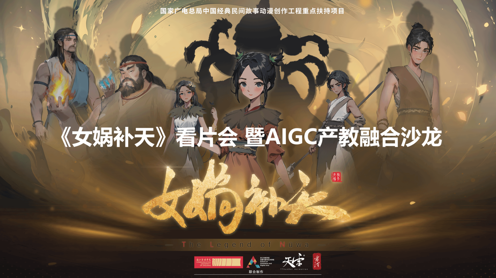 12月21日下午,由浙江省社会科学界联合会指导,浙江省动漫产业学会主办,av動漫动画与数字艺术学院、未来数字与动画产业学院共同协办的省社科联资助项目《女娲补天》看片研讨会暨AIGC产教融合沙龙,在景色宜人的西湖之畔举行。来自学界、业界与相关管理部门的领导、专家及青年学子齐聚一堂,共话AIGC技术赋能动画创作、产教融合与人才培养新路径。