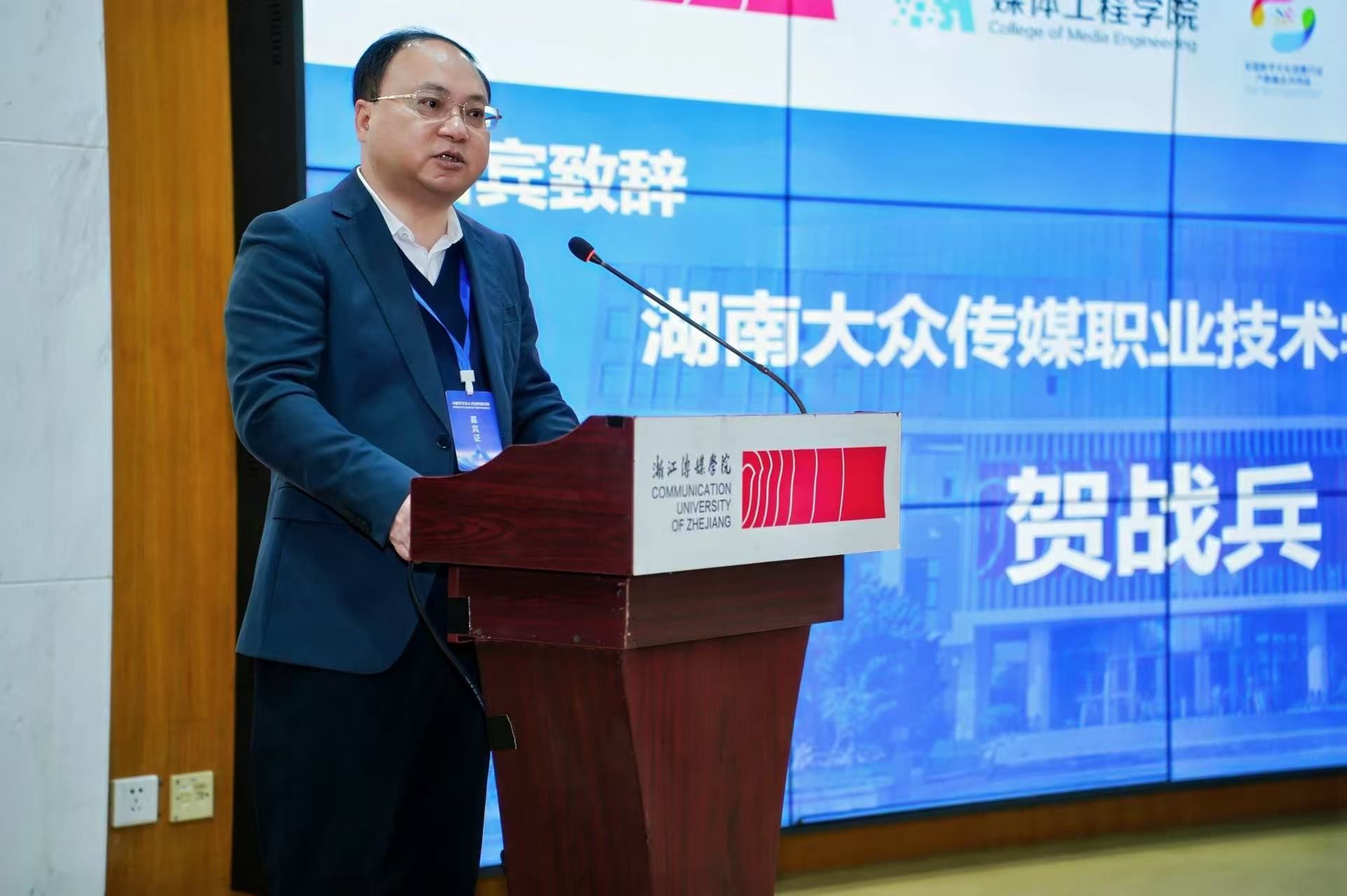 湖南大众传媒职业技术学院校长贺战兵致辞中指出,职业院校与行业发展紧密连接,应主动成为以教育支撑产业、以创新引领发展的深度参与者与坚定推动者,在AI与艺术交叉融合的新赛道上,肩负起培育新型技术技能人才、服务文化强国战略的重要使命。作为共同体牵头单位,他提出三点倡议:深化“AI+艺术”育人体系,共筑教学创新高地;聚焦科技与文化融合,共推关键技术攻坚;拓展国际职教合作,共育“出海”能力。