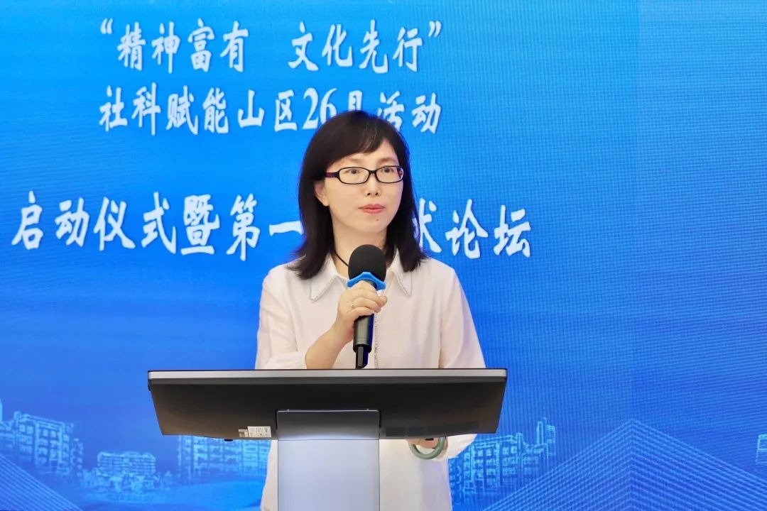 李文冰介绍了社科赋能山区26县活动的具体内容。本次活动将于今年5—12月推出以“精神富有 文化先行”为主题的“四个一”系列活动,即完成一个重点研究课题、一份高质量调研报告、一系列文化视频、一系列学术论坛。以重点研究课题深入了解浙江山区26县建设现状,分析原因并提出对策;以高质量调研报告为省委省政府决策提供参考;以文化视频呈现浙江山区26县文化礼堂的建设现状、特点以及成果,为全国呈现浙江方案;以学术论坛理论阐释“社科赋能”,推动社科创新发展,开创高质量发展的新局面。