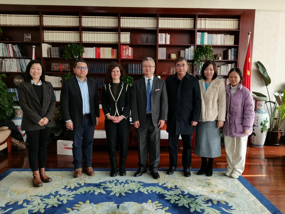 12月20日,英国伦敦大学皇家霍洛威学院副校长Ruth Livesey教授一行访问我校,副校长姚争会见了来宾,国际交流合作处、播音主持艺术学院和国际文化传播学院负责人参加了会谈。