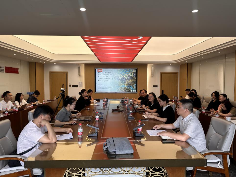 访问期间,蒋淑君教授给国际文化传播学院、新闻与传播学院、文化创意与管理学院的教师做了题为《满足穆斯林对中东和北非地区对话ESG沟通的期望》的专题报告。
