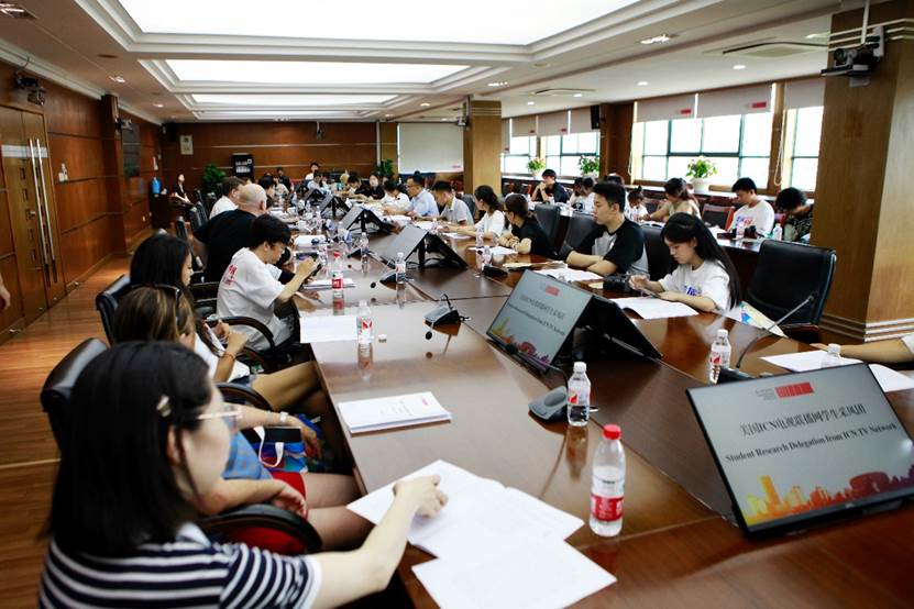 7月20日,美国ICN电视联播网学生采风团来我校交流访问。校党委委员、宣传部(教师工作部)部长孙保胜出席欢迎仪式并致辞,宣传部(教师工作部)、国际交流合作处相关负责人和国际文化传播学院师生代表参加活动。