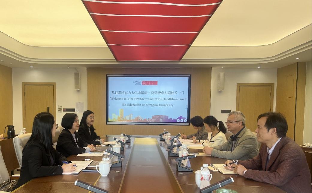 11月19日,泰国东方大学副校长宋塔温·贾里特库安一行到访我校,副校长姚争会见了来宾,学校教务处、国际交流合作处、国际教育学院和公共艺术教育部等单位负责人参加座谈会。