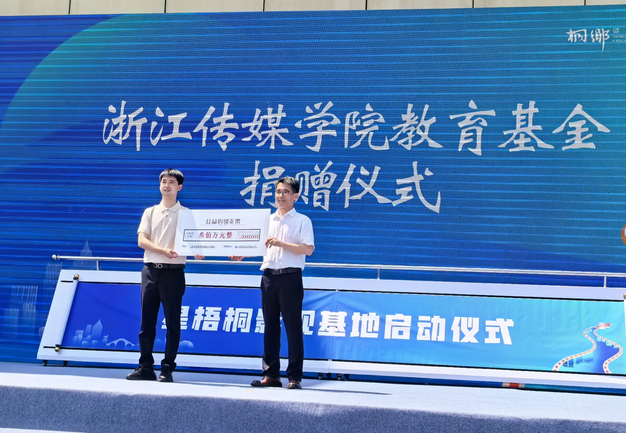 基地在与学校签订合作协议的同时,现场进行了教育基金捐赠仪式。首期捐赠资金300万元,旨在共建“政产学研用”一体化生态,打造集人才培养、内容创作、技术研发、产业孵化于一体的战略合作平台,培育新时代影视人才,助推产业升级。