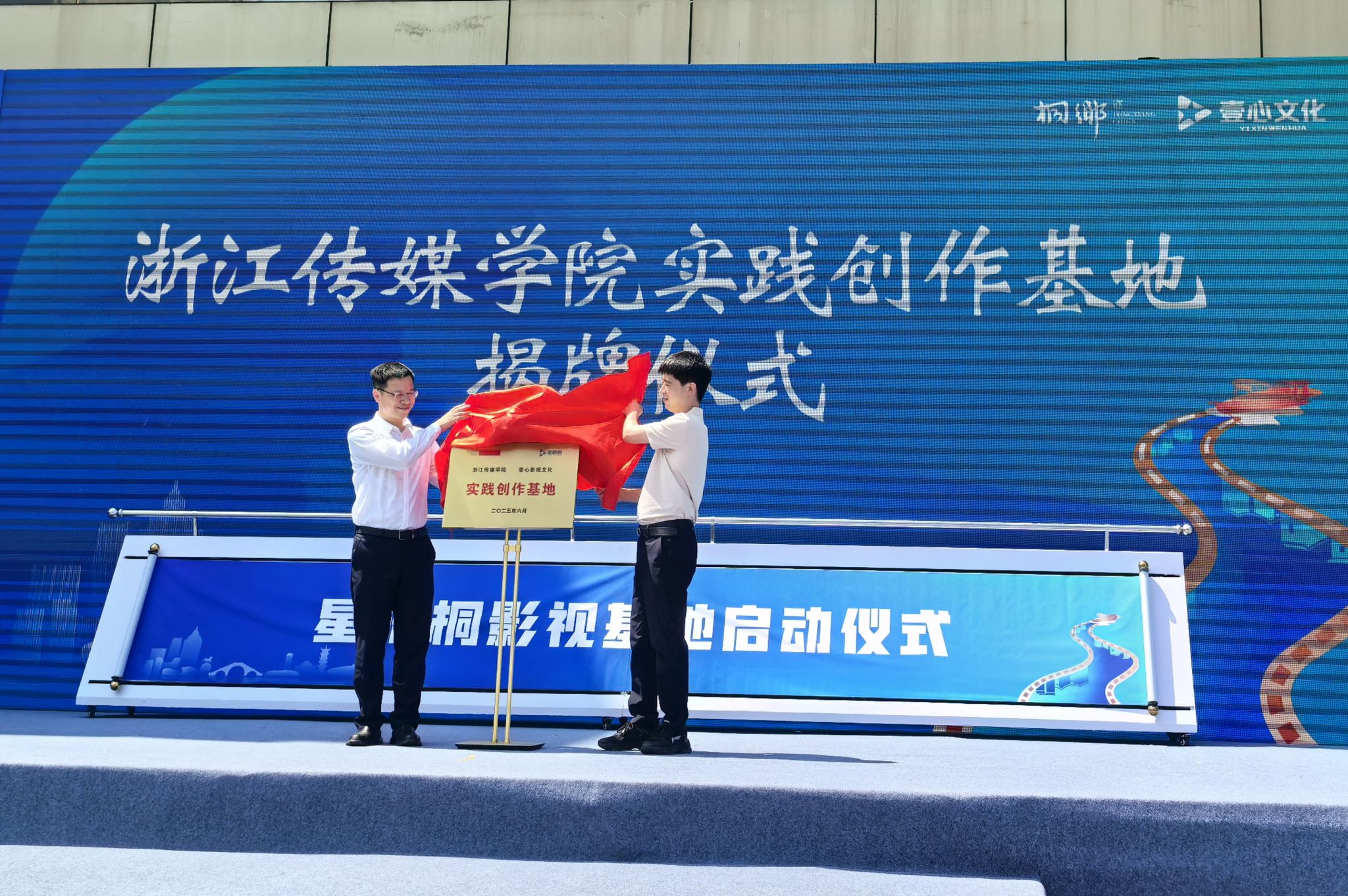 影视基地负责人吴耀耀与陈兵共同为学校实践创作基地揭牌。基地将为我校学生提供表演、化妆特效、摄影摄像、服装造型、后期制作、媒体传播等实习就业岗位。星梧桐影视基地总建筑面积超20000平方米,在15分钟车程内设置“一园多区”全域拍摄场景。其中,永利广场为核心产业园,打造15000平方米现代都市剧拍摄场景,涵盖办公室、影视主题酒吧、概念餐厅、健身会所、商业区街、主题公园、银行服务中心等全天候拍摄场景;金融大厦为凤凰湖总部企业高级办公区场景;合悦江南为影视主题商业街区、医疗影视中心;我校桐乡校区为校企联合综合拍摄基地,涵盖5000平方米摄影棚。