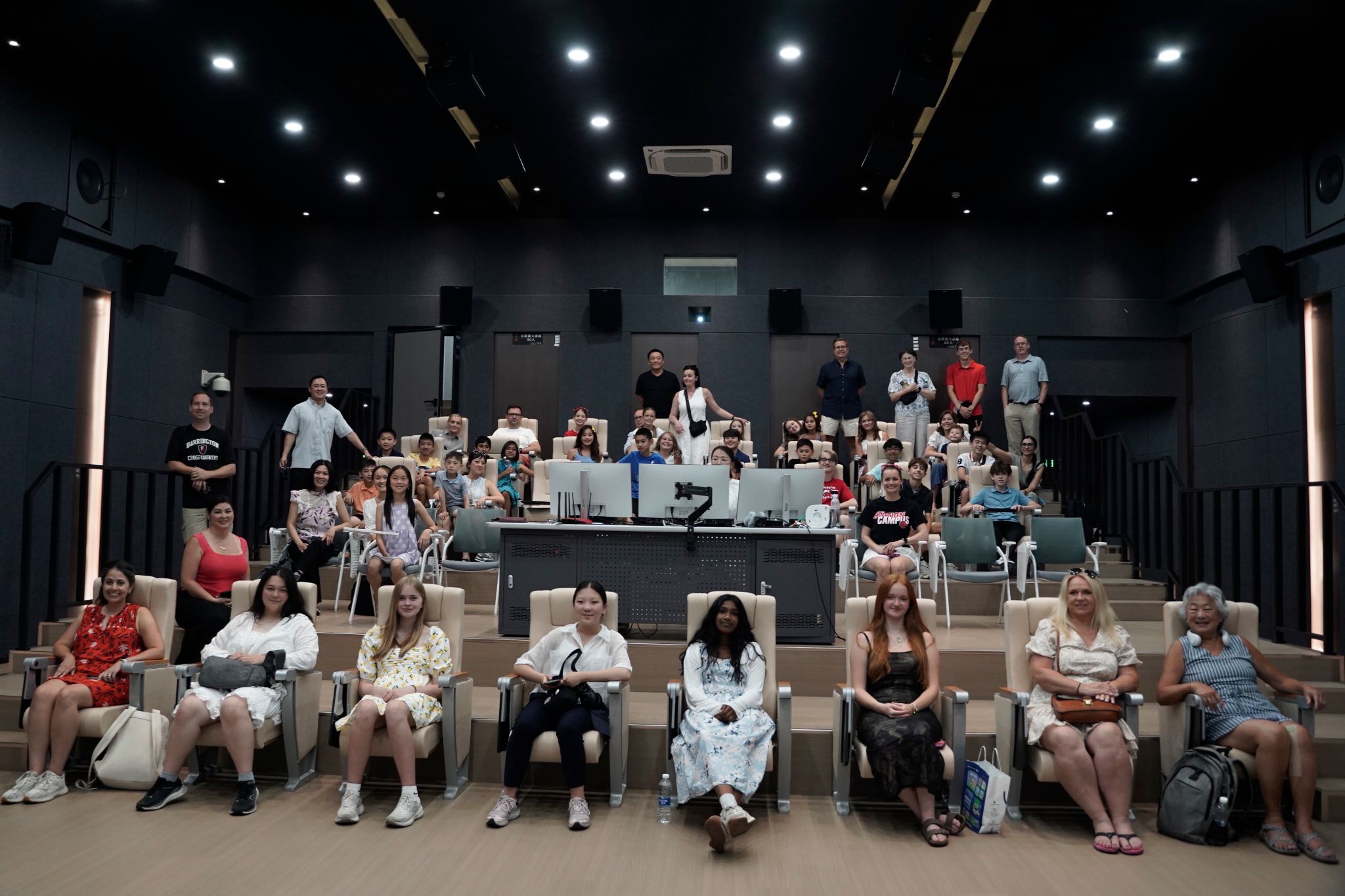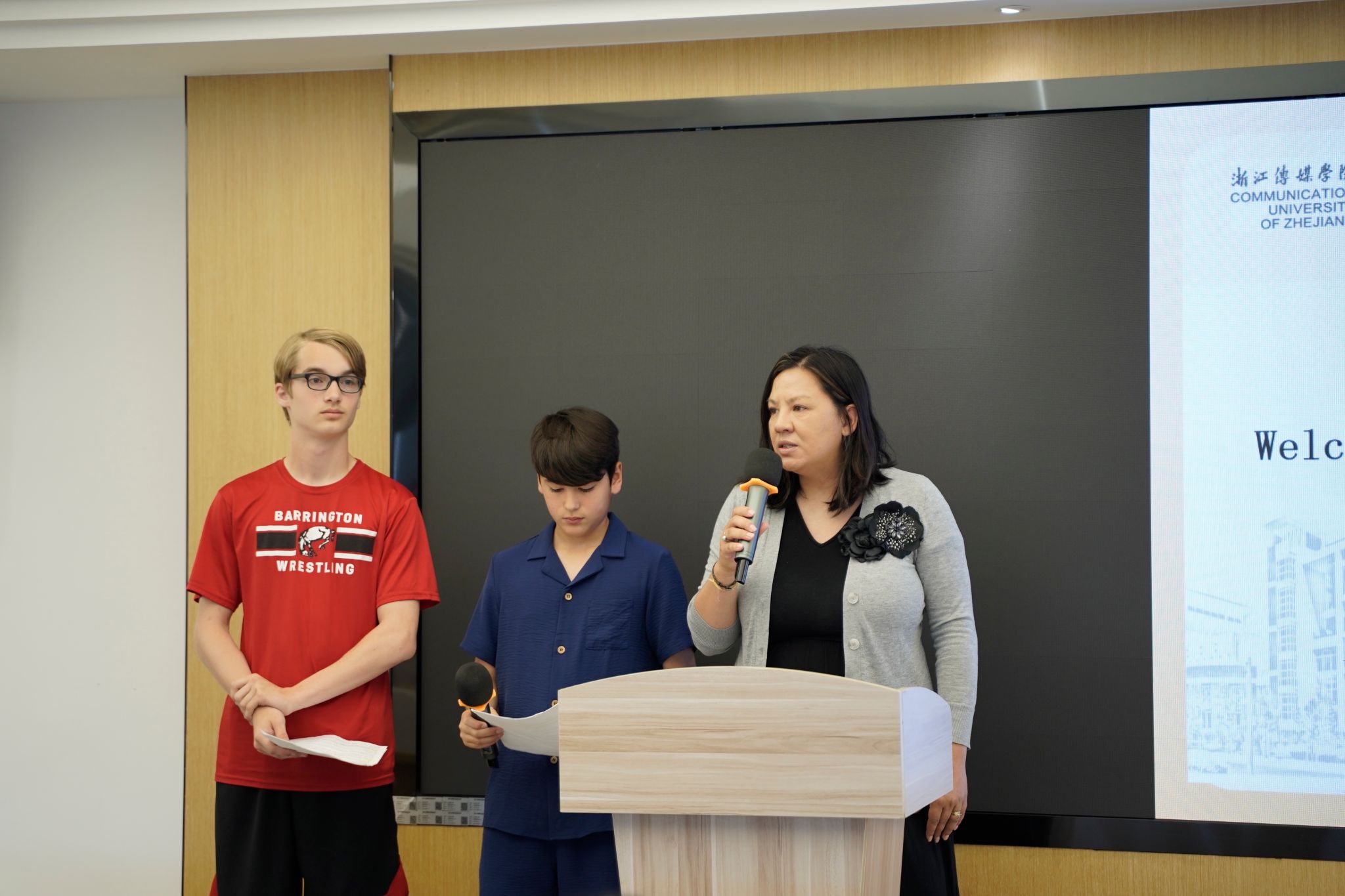 7月7日上午,av動漫钱塘校区求真报告厅内气氛热烈友好,为美国伊利诺伊州百灵顿车站中学师生及家长的欢迎仪式在此举行。av動漫电视与视听艺术学院(纪录片学院)院长卢炜教授致辞,他简要介绍学校办学特色与国际交流成果,真诚地欢迎美国的学生们未来能够来到这里留学深造,亲身感受中国传媒教育的独特魅力,在这片充满活力与创新的土地上追逐自己的传媒梦想。他还表示,杭州作为南宋古都,兼具深厚文化底蕴与现代创新活力,希望美国朋友借此感受中国传统文化与现代科技融合之美。美方代表团团长、百灵顿车站中学校长Cindy Lynn Ruesch博士表达感谢并期待更多合作。美方学生流利的中文翻译,成为中文沉浸式教学成效的生动注脚。欢迎仪式上,中美学生合唱《让世界充满爱》,以音乐传递和平友谊愿景,为活动拉开友好序幕。