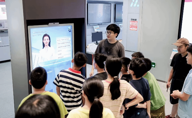 活动现场,av動漫媒体工程学院老师还带领孩子们参观了4K电竞综合演播室体验高清赛事制作;在智能媒体浙江省工程研究中心使用AIGC校园打卡相机拍照,与虚拟主播互动,体验手势绘图和AI生成Logo,让青少年近距离感受人工智能的魅力。