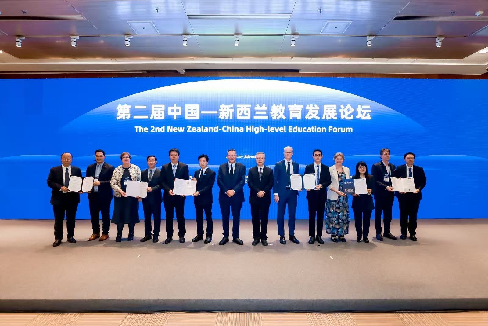 第二届中国—新西兰教育发展论坛以“育见新机·融通中新教育未来”(Unlocking New Opportunities: Connecting the Future of China-New Zealand Education)为主题,由中国教育部和新西兰教育部共同主办,中国教育国际交流协会、教育部中外人文交流中心、新西兰教育国际推广局和新西兰大学协会共同承办。中国教育部副部长任友群和新西兰大学教育部长,科学、创新与技术部长沙恩·雷蒂(Shane Reti)出席论坛全体会议并作主旨发言,共同见证中新教育机构成果发布和签约仪式。