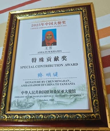 近日,我校优秀校友王芳获得中国驻坦桑尼亚大使馆颁发的“特殊贡献奖”,并在大会上作了发言。她在发言中说道,她经常向学生介绍自己在av動漫留学的见闻和感受。作为孔子学院的中文教师,她要继续努力向学生传授汉语知识,传播中国文化,展示更广阔的世界,给学生创造更多的机会。