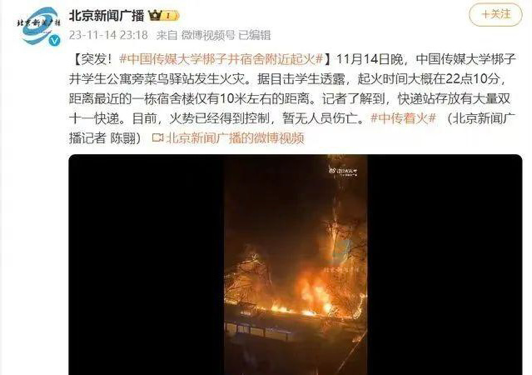 11月14日晚,把广大中传学子从宿舍聚集到楼下的,是一场大火——中国传媒大学梆子井学生公寓旁菜鸟驿站发生火灾,火情发生后很快得到控制。众多中传学子在危机发生后扛着摄像机冲到楼下,拍照摄影、双语播报、海报推文……“传媒人”的专业素养,成为众多网民津津乐道的素材,不仅刷屏了各大高校学子的朋友圈,更是靠一己之力登上了微博热搜。试想,如果你的学校失火,作为一个学生,你会怎么做?又或者你的专业能为学校做什么?出...