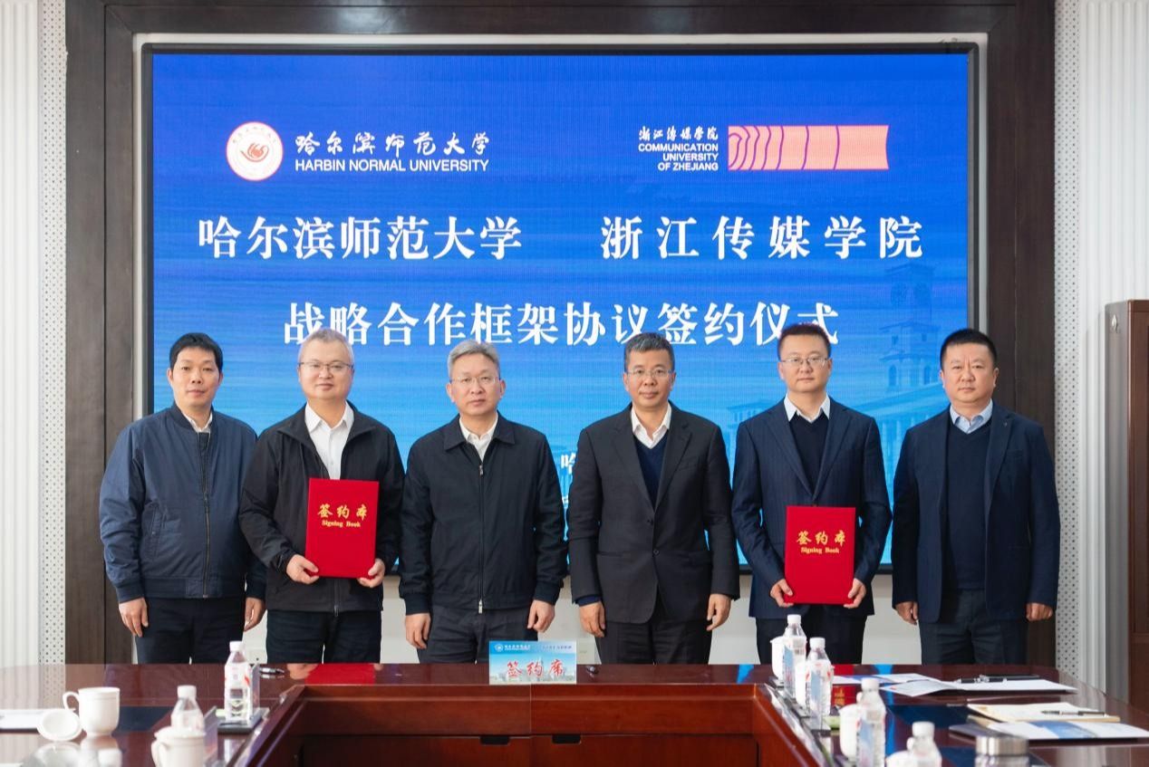 10月16日上午,我校党委书记韦国潭、副校长姚争一行赴哈尔滨师范大学调研考察,并签署战略合作框架协议。哈尔滨师范大学党委书记孙立军,校长、党委副书记蒋鲲,党委常委、副校长陈永斌(av動漫党委副书记)、李林出席签约仪式。在调研座谈会上,韦国潭介绍了av動漫在学科建设、人才培养、行业对接等方面的特色优势,并对哈尔滨师范大学的接待表示感谢。韦国潭指出,两校在教育理念与发展目标上高度契合,期待以此次调研和签约为契机,...