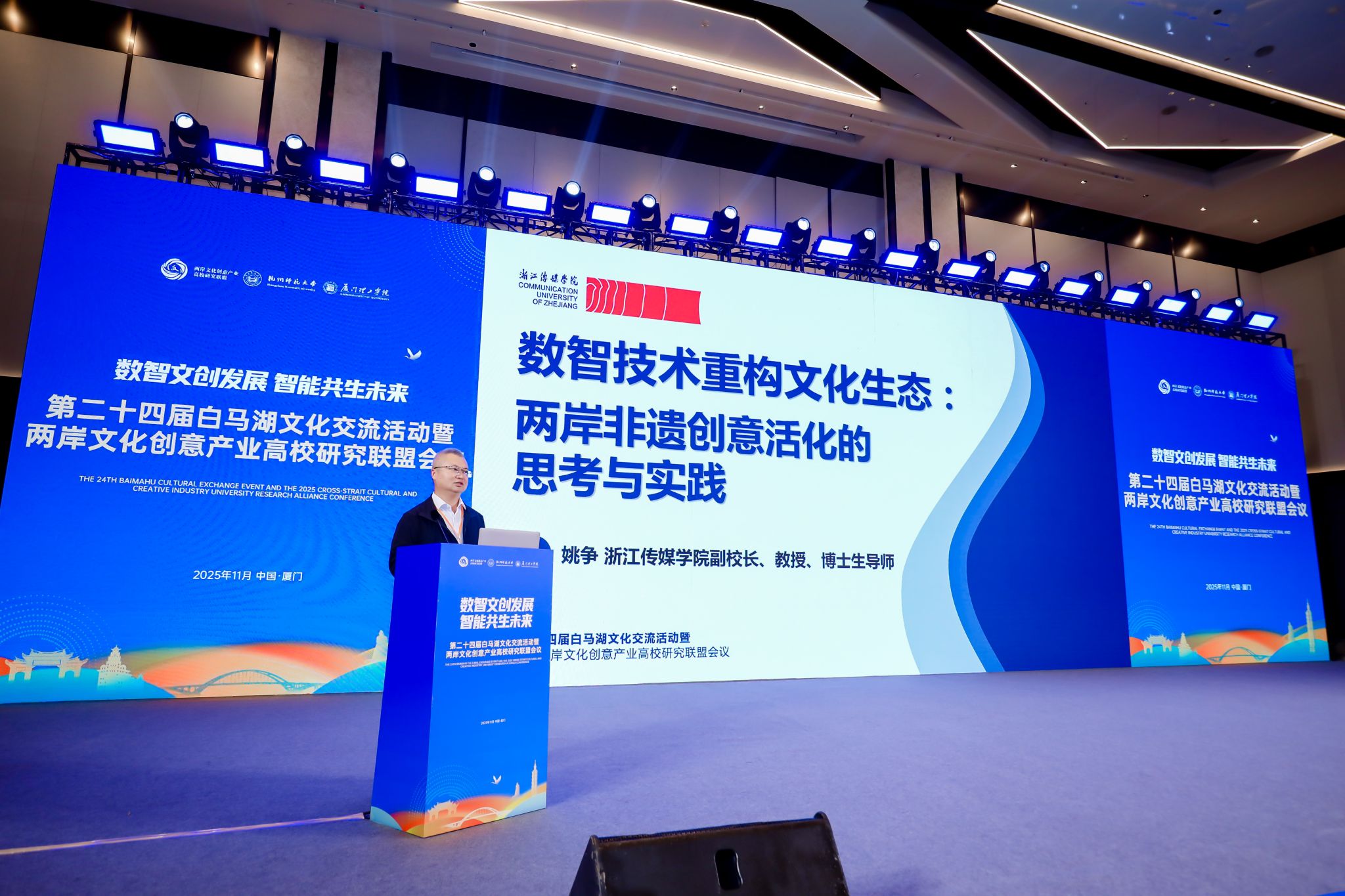11月1日,以“数智文创发展·智能共生未来”为主题的第二十四届白马湖文化交流活动暨2025两岸文化创意产业高校研究联盟会议在厦门举办,副校长姚争出席年会并作主旨演讲。学校港澳台事务办公室、传媒实践教学与艺术创作中心负责人陪同参加活动。姚争围绕“数智时代文创产业新纪元”主题,作了题为“数智技术重构文化生态:两岸非遗创意活化的思考与实践”的主旨演讲,与参会嘉宾深度分享了两岸数智非遗的实践与前景。来自两岸高校学者、...
