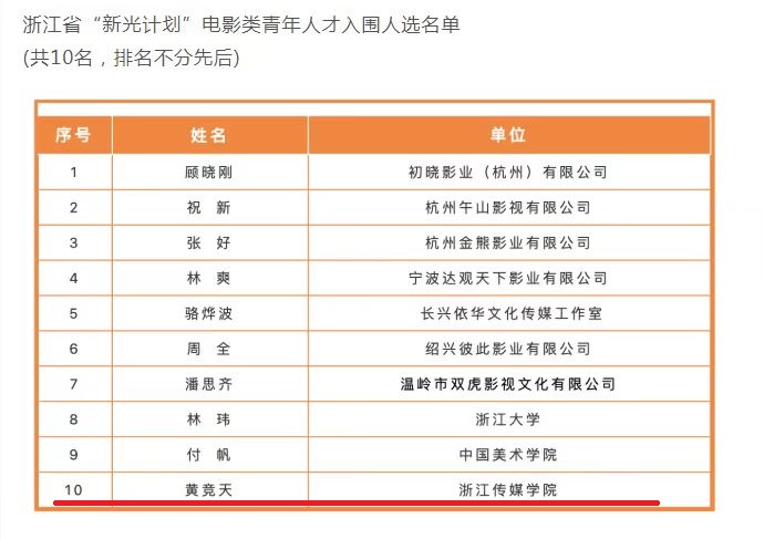 近日,浙江省电影局公示了浙江省“新光计划”电影类青年人才入围人选,我校文学院教师黄竞天入围,成为我校第一位入选此人才培养计划的青年教师。“新光计划”是落实我省“文化人才工程”的实际举措之一,致力于发现选拔德艺双馨、锐意进取、富有潜力的青年人才,进行重点支持、精心培育、动态管理。经过组织申报、资格审查、专家评审等程序,共遴选产生了10名青年人才,黄竞天成功入围。黄竞天系文学院戏文系教师,中国作家协...