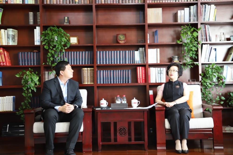 校党委书记杨立平与霍尼韦尔航空航天中国首席技术官肖进洽谈合作事宜